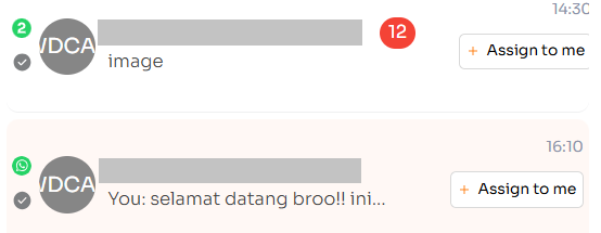 * Apabila konfigurasi 'Division Only View', 'Handle (View) All Chat', dan 'Allow Agent Assignment' diaktifkan secara bersamaan, hal ini akan mengaktifkan fitur 'Assign to Me'. Fitur ini memungkinkan Agen untuk secara mandiri menugaskan (Assign) percakapan kepada diri mereka sendiri.