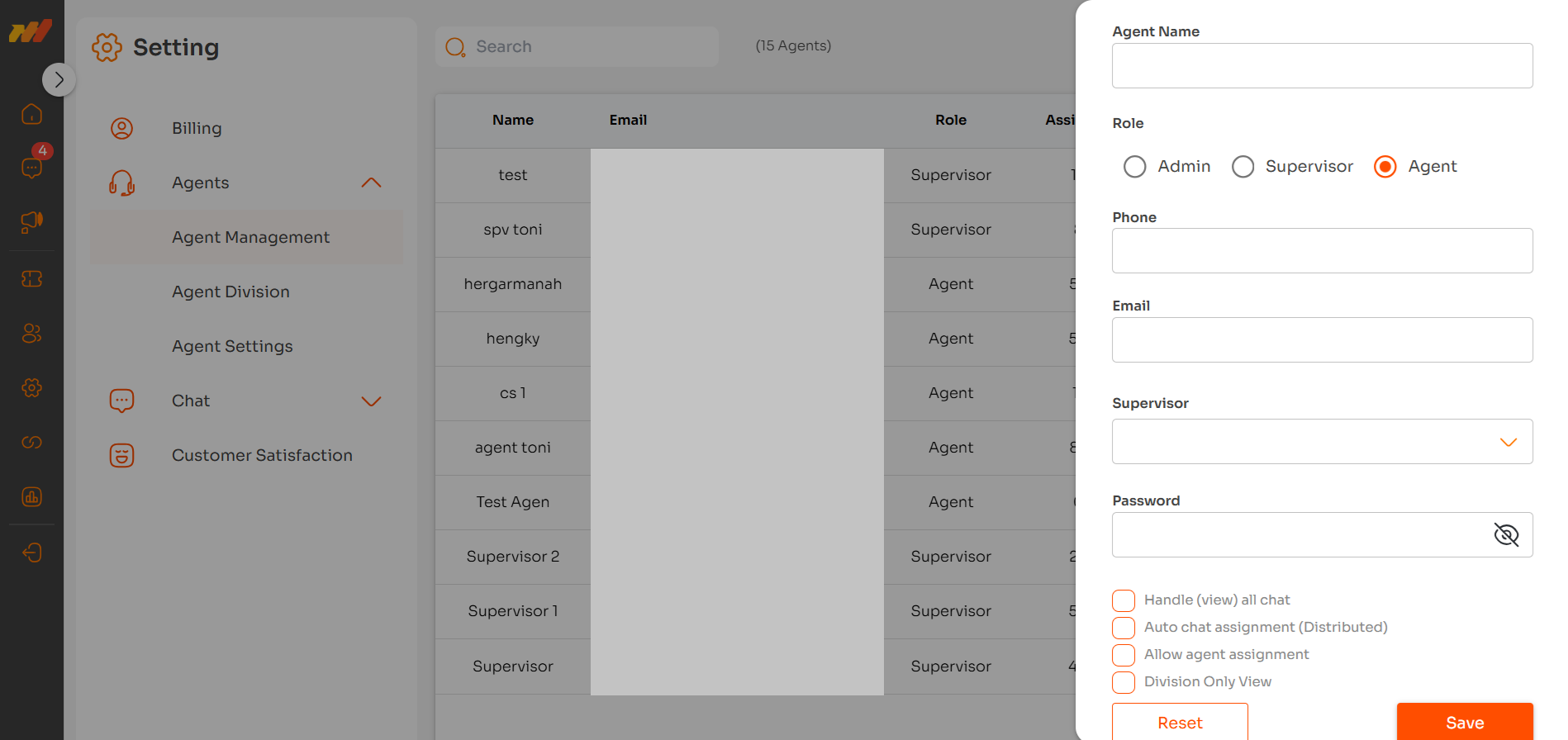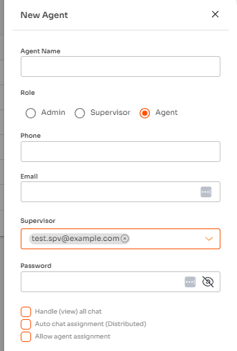 Saat menambahkan Agent, Anda akan melihat satu kolom yang berbeda dari form pembuatan akun Admin atau Supervisor.
